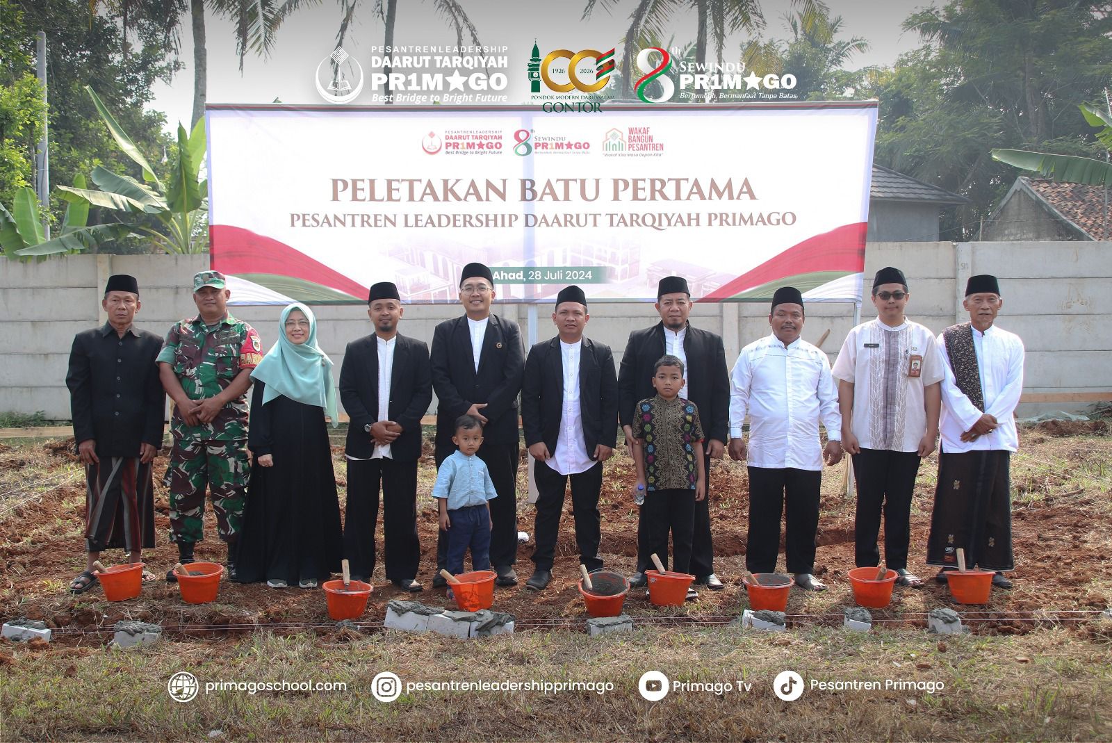 Dengan mengucap basmallah dan takbir Pimpinan Pesantren Leadership Daarut Tarqiyah Primago, Nur Julizar, SE, Dr.Awaluddin Faj, M.Pd, Ahmad Ghozali, S.Pd, meletakkan batu pertama seraya berdoa kepada Allah SWT. Dengan berharap, Pesantren ini menjadi ladang amal bagi siapa pun yang merindukan rumah di surga serta meraih kebahagiaan di dunia dan akhirat.