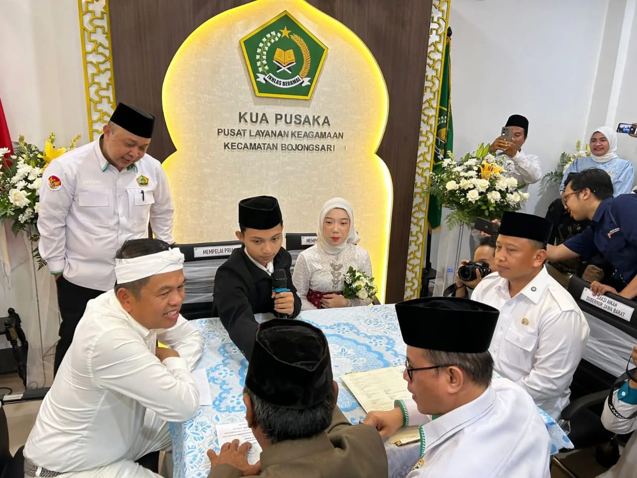 Edisi.id — Gubernur Jawa Barat, Dedi Mulyadi bersama Wali Kota Depok, Supian Suri menjadi saksi nikah dalam pelaksanaan nikah sederhana yang diikuti lima pasang pengantin dari Kota Depok maupun luar daerah.